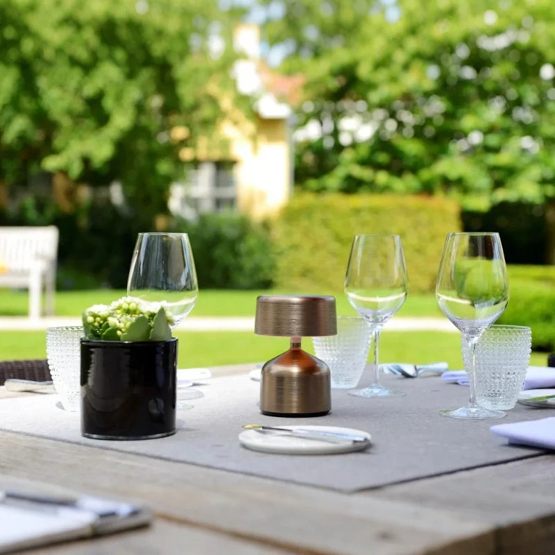 Auralis™ Table Lamp merge modern artistry with effortless functionality, offering a perfect balance of form and illumination. Crafted from premium wrought iron, each compact lamp embodies understated luxury and timeless design. The cordless, dimmable structure allows seamless placement anywhere, from dining tables to lounge corners, enhancing every space with a soft, ambient glow. Designed to bring quiet sophistication to both elegant interiors and refined commercial settings, it creates an atmosphere of calm elegance.